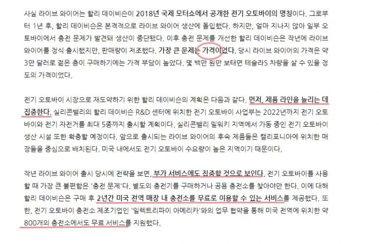 그 이후 왜 젊은 사람들은 우리 모터사이클을 샂 않을까를 시작으로 '가격', '충전', '서비스' 등에서 문제를 발견한다.