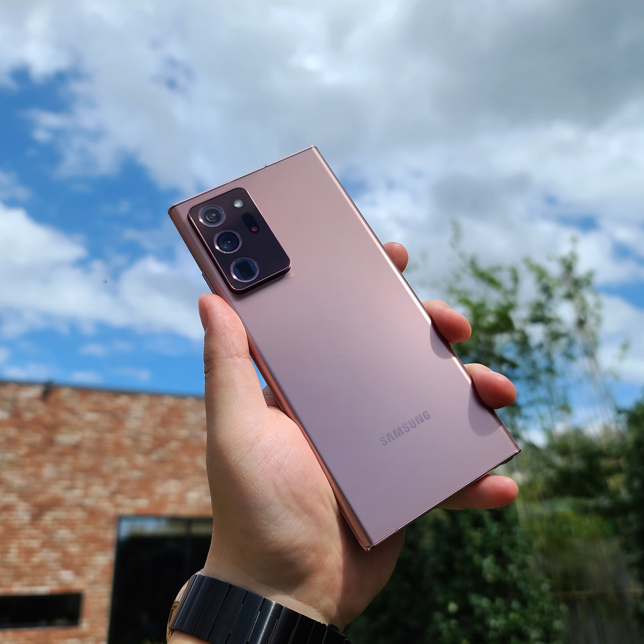 나는 갤럭시 S 시리즈의 둥근 디자인보다는 노트 시리즈의 각진 디자인을 선호하는 편이다. 디자인은 개인적인 취향이지만, 노트 시리즈의 네모 반듯하고 단단한 디자인에서 신뢰감을 느낄 수 있기 때문이다. 이번 갤럭시 노트 20 시리즈에서는 더 넓어진 디스플레이와 후면 한쪽에 모여 있는 카메라 디자인이 마음에 든다. 기존 S20 울트라 모델의 후면 카메라 배열보다는 정돈된 느낌이다. 특히, 이번 갤럭시 시리즈에서는 "미스틱 브론즈" 색상이 메인 컬러인데, 후면을 무광으로 처리하여 지문도 묻어나지 않고 깔끔하다.