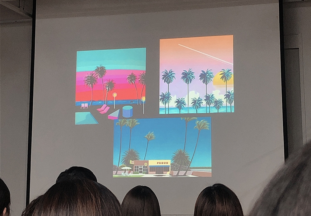 개인의 취향에 대한 소개를 하면서 8-90년대 일본 버블경제 때의 시티팝, 레트로 무드의 일러스트 등과 게임 팩 등을 소개하셨는데, 어린 시절 경험한 앨범과 게임의 다채로운 디자인, 다양한 경험들이 쌓여 그게 그의 그래픽 작업물의 근간이 된다고 하였다.