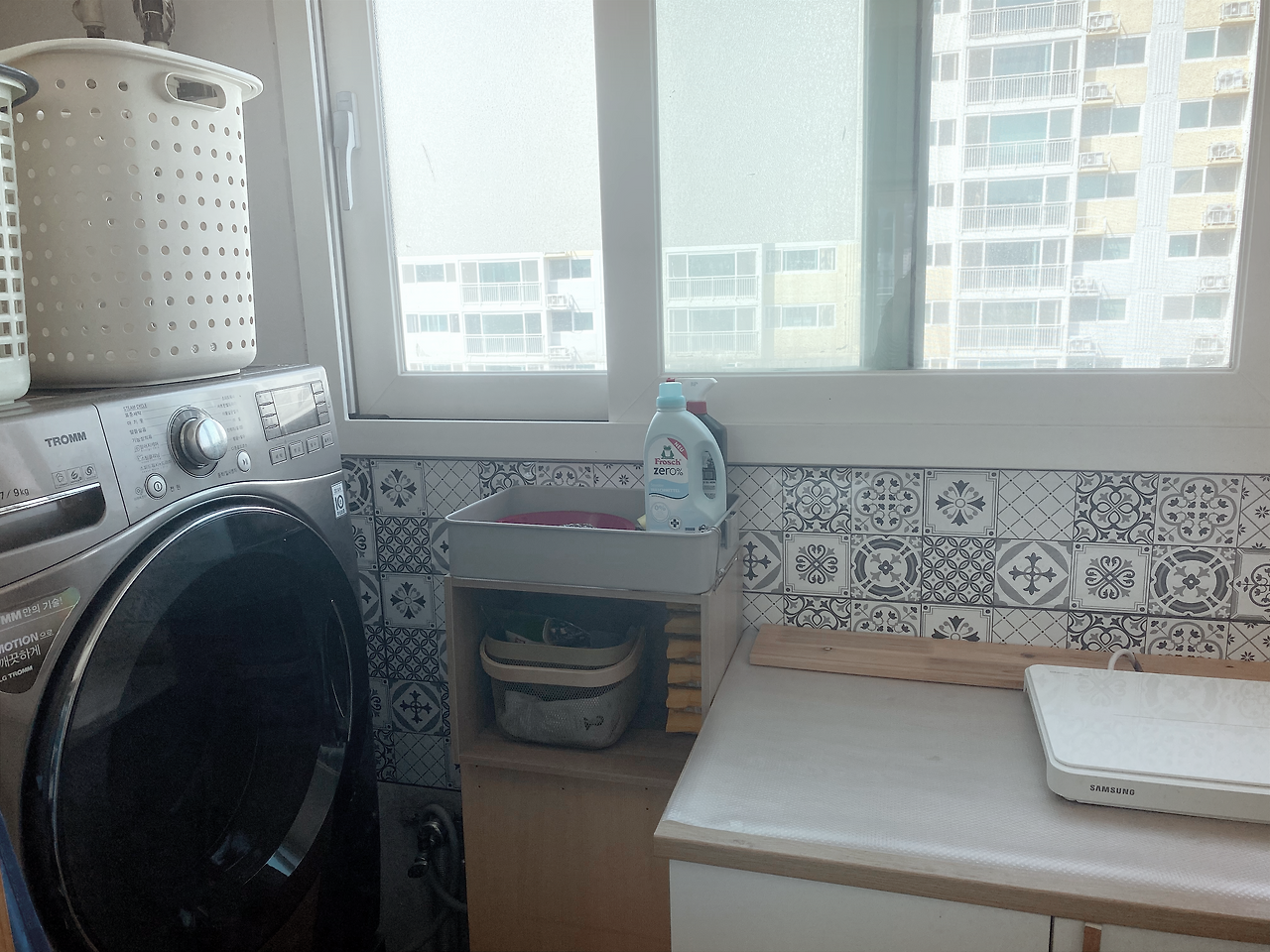 이 작은 보조주방 덕분에 언제나 요리 냄새가 적은 청정한 집을 유지할 수 있다. 게다가 보조주방에 냉장고 두는 공간이 있어서 냉장고를 보조주방에 두니 집에서는 냉장고 소음이 전혀 들리지 않아서 좋다.