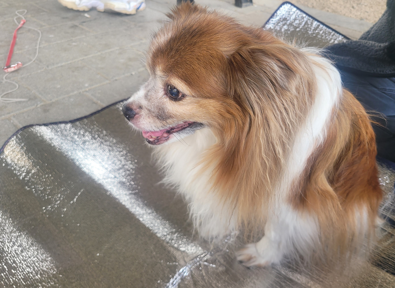 돗자리 위에 앉았다, 밖에 앉았다, 왔다갔다하는 또리.