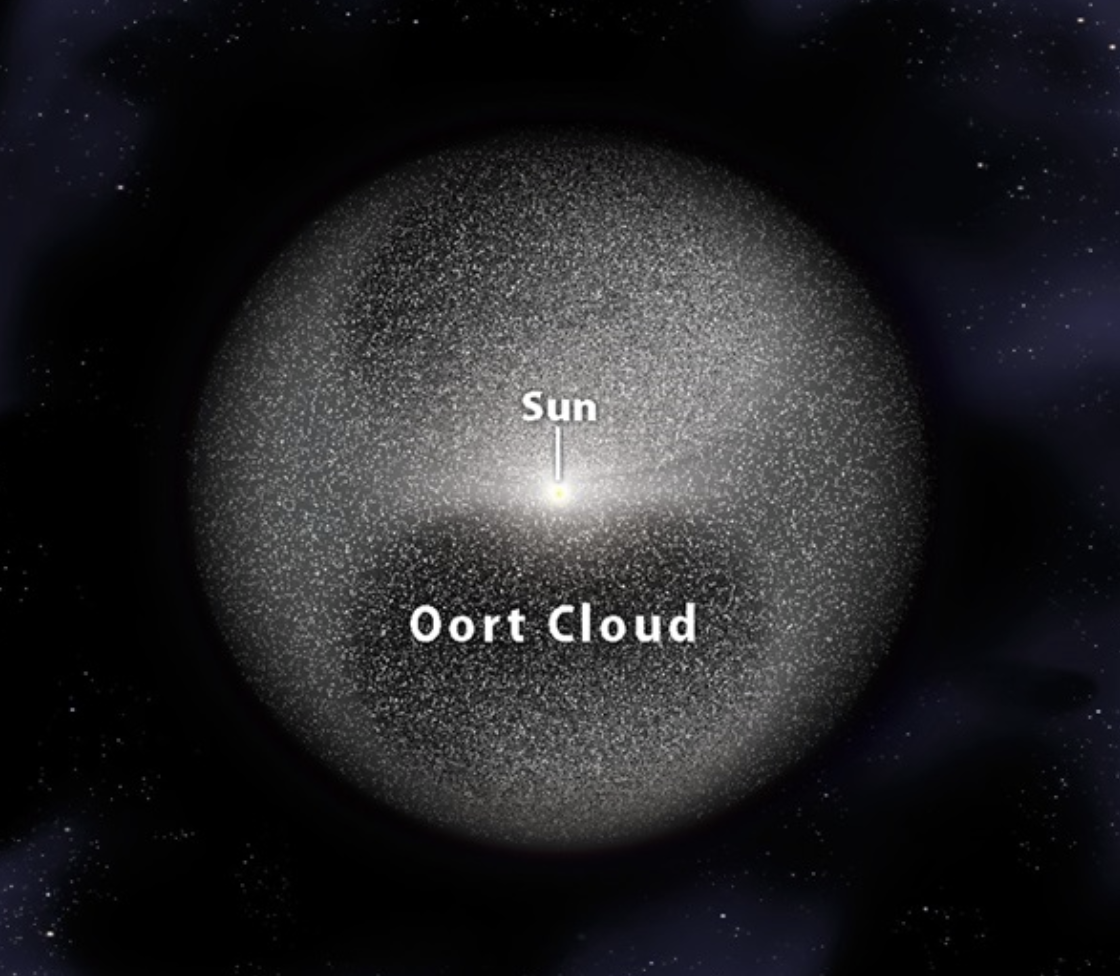 혜성의 핵들이 태양계를 구의 형태로 감싸안고 있으며 태양 주위를 공전한다.