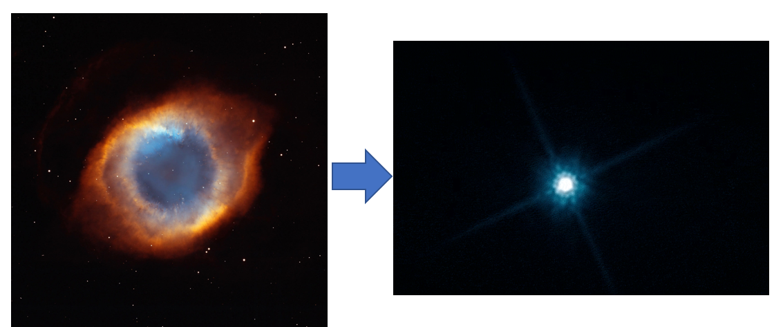 남아있는 중심핵은 수축을 계속하고 식어가며 백색왜성이 된다