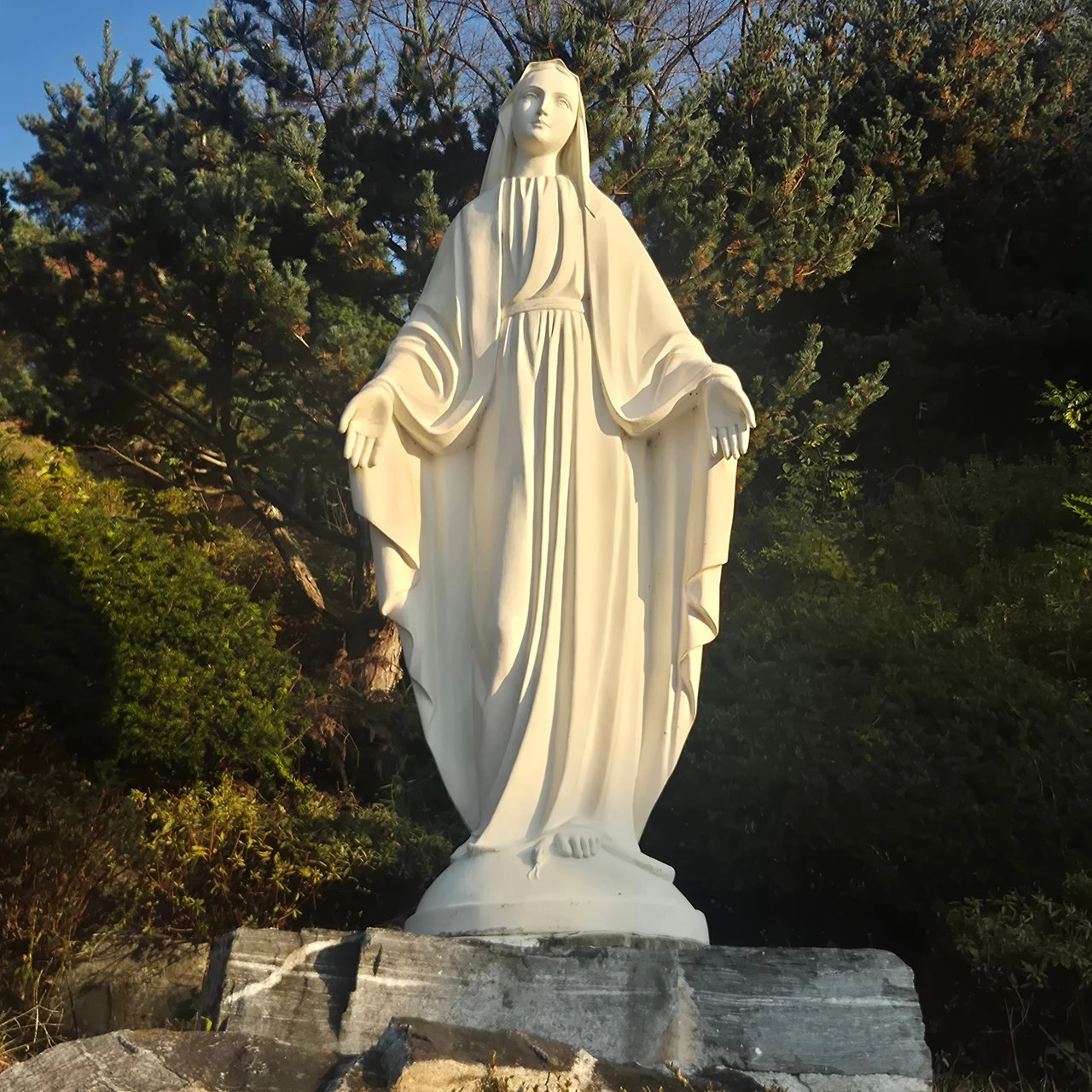 네가 호기심에 기도를 올렸을 천주교 성당 마리아 앞에 서 보기도 했다