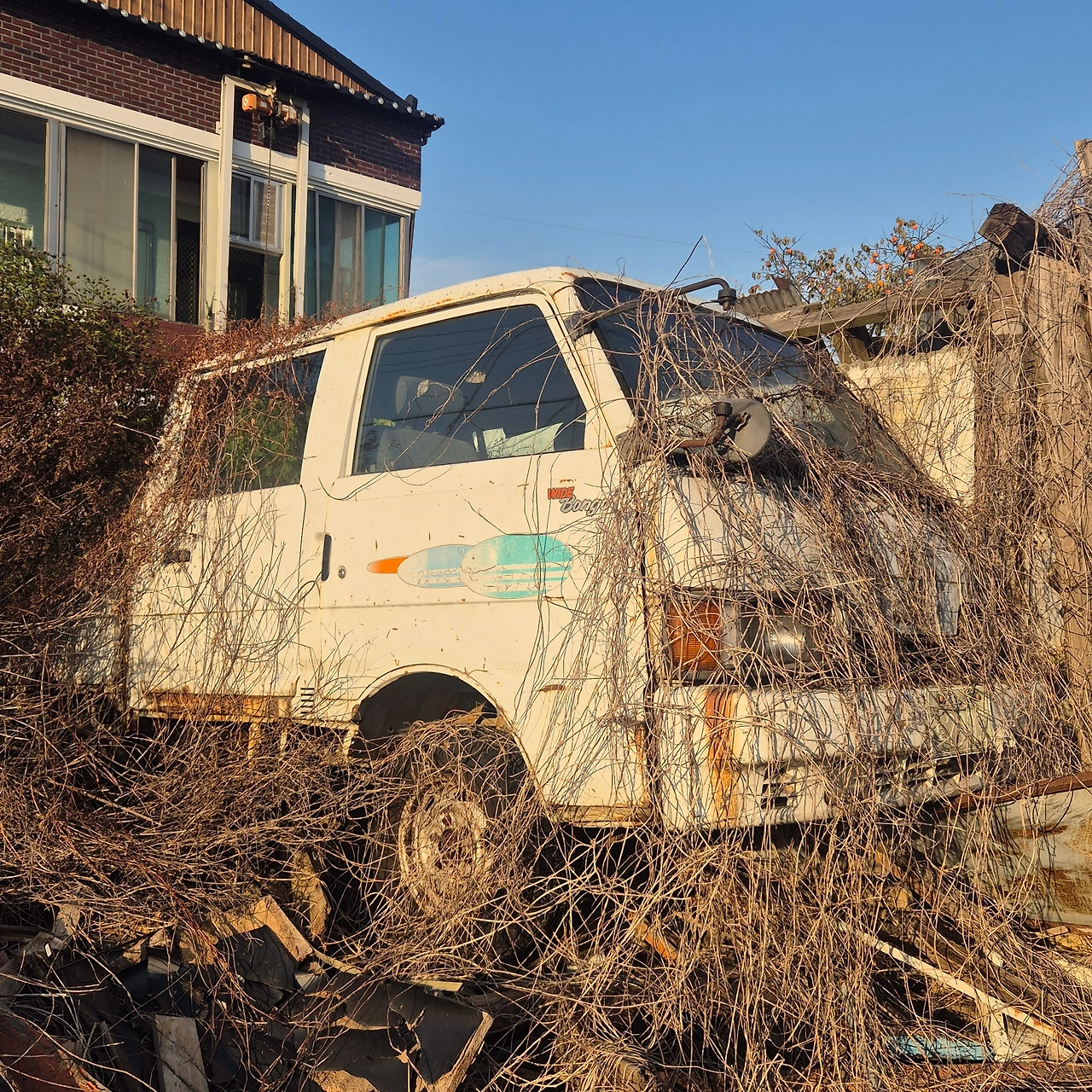 역 맞은편을 건너 모퉁이를 돌면 산에서 주워온 오래된 바닥돌을 깐 좁은 길을 지나, 떨어져 나뒹굴어도 주워갈 이 없는 작고 늙은 호박이 언제 치워질지 모르는 길섶의 잠을 자는 짤막한 오솔길을 지나면 십여 년 전 창호문 걸쇠에 자물쇠 하나로 굳게 잠겨있던 흙집이 사라지고 낯선 노란 담벼락으로 둘러진 집이 있다. 내가 세상을 구하겠다고 옥상으로 올라가는 계단에서 슈퍼맨처럼 뛰어내렸던 이층집 이장님 댁도 어디 있는지 알아보지 못했다.