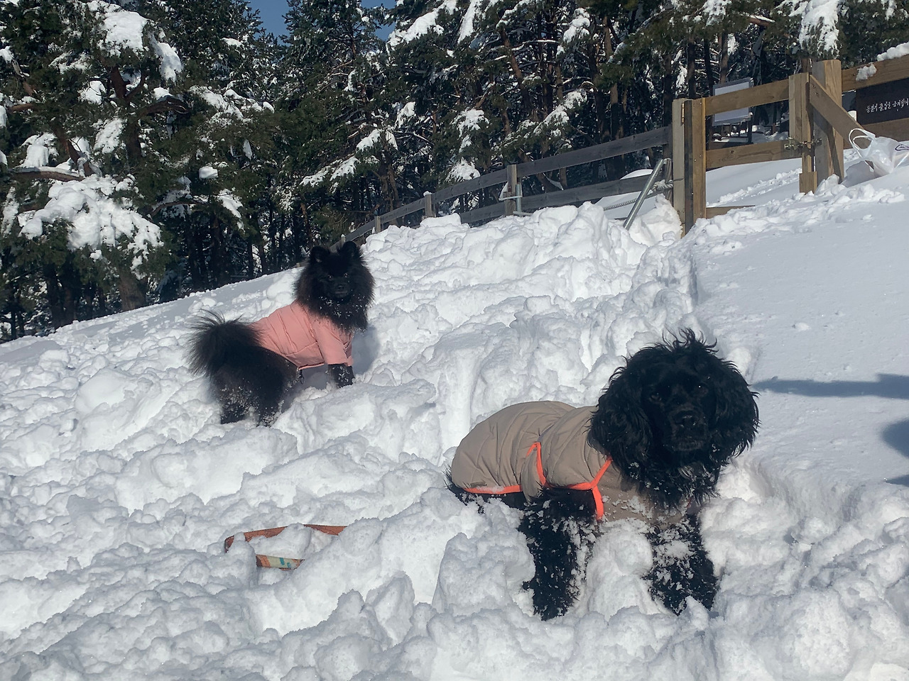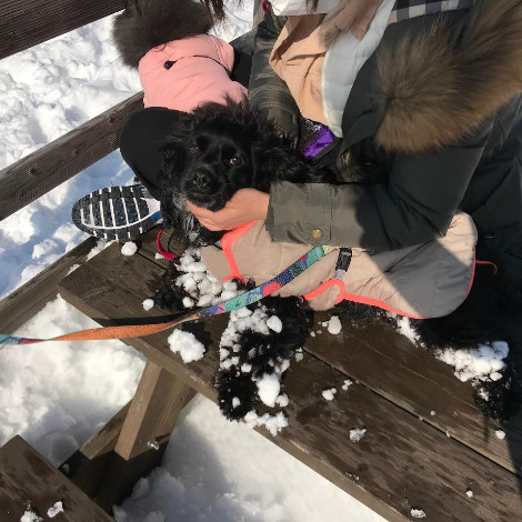 잘 놀다 잠시 쉬기 위해 카페테리아 안으로 들어왔다. 눈속에서 신나게 논 아이들은 허기가 진 나머지 사료와 간식을 흡입했고 물도 벌컥벌컥 들이켰다. 사람이나 개나 극한 상황에서 놀면 체력이 빨리 떨어지기는 마찬가지 인가보다. 발바닥과 다리털 사이사이에 마시멜로우처럼 맺힌 눈결정을 녹이기 위해서는 핫팩도 넉넉히 챙겨갔어야 했다. 처음 가보는 겨울여행이라 배우는점들이 더 많은듯한 이번 여행이었다.