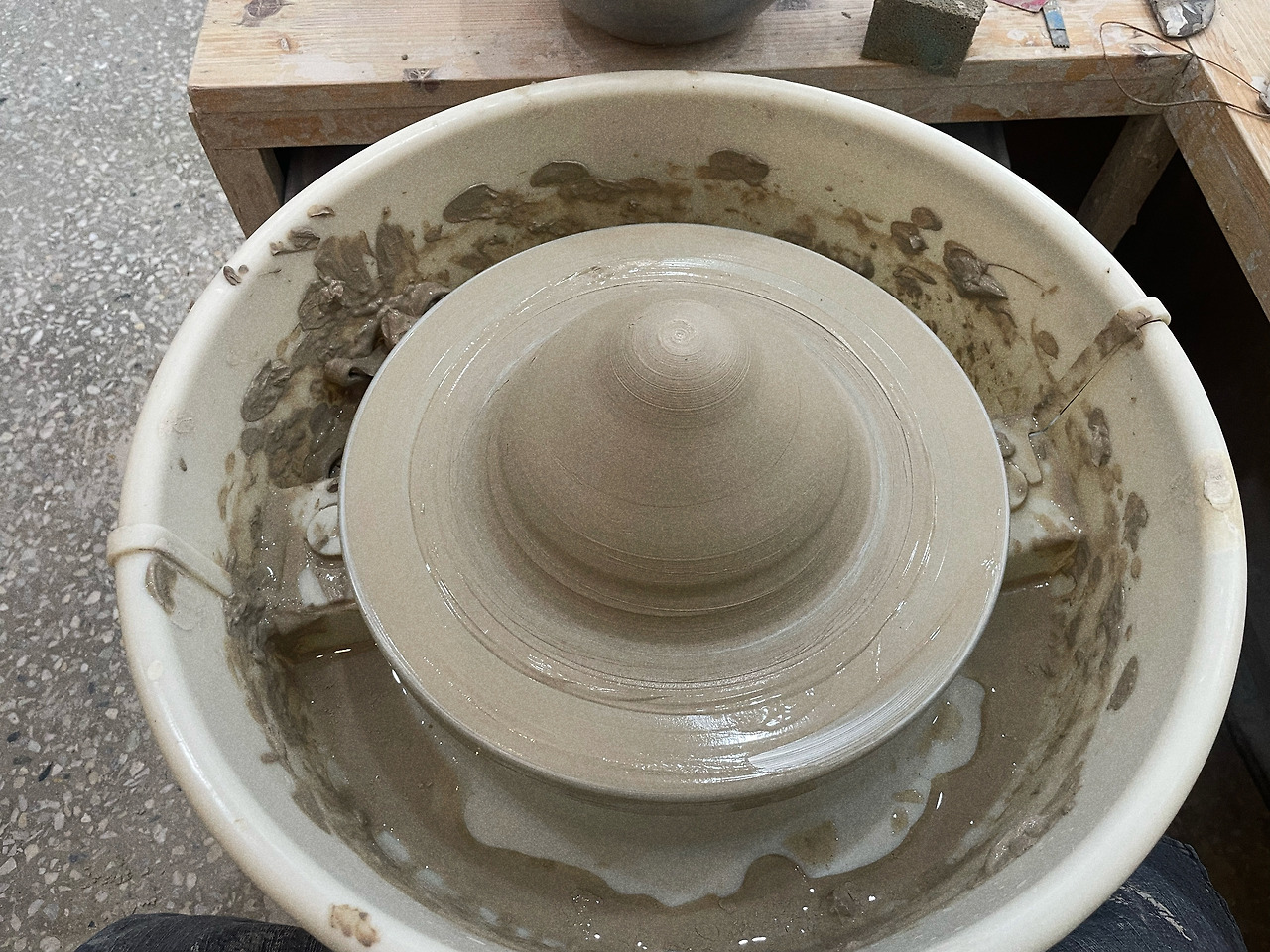 몸을 최대한 물레판에 가깝게 하다 보니 소지가 돌아가고 형태가 바뀌는 모습이 정말 세세하게 보이는데, 내 손길에 따라 형태가 변하고 무늬가 남는 소지의 모습을 보는 게 신기하고 즐거웠다. 빙글빙글, 흔들리지 않고 점점 중심을 잡아가는 모습이 어쩐지 대견하기도 하고 꽤나 아름다웠다.