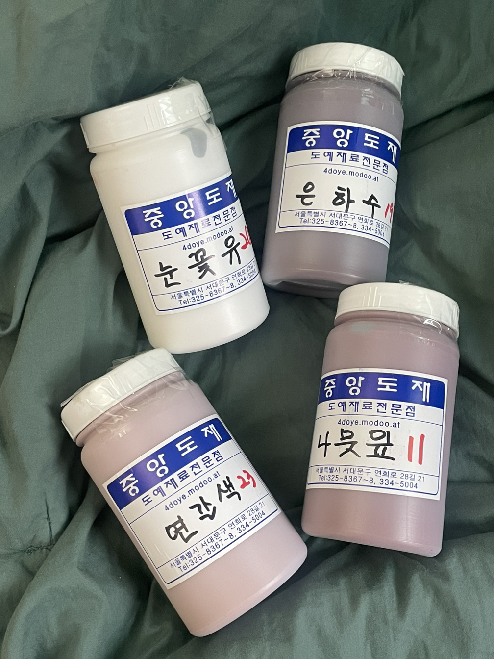 주로 많이 알려진 곳이 '중앙도재'. 그리고 선생님이 개인적으로 좋아하는 '오드포뮬라' 이렇게 소개받았는데, 저는 아직 초심자니까 제일 잘 알려지고 쉽게 주문할 수 있는 중앙도재에서 4가지의 붓시유용 유약을 구매했어요.