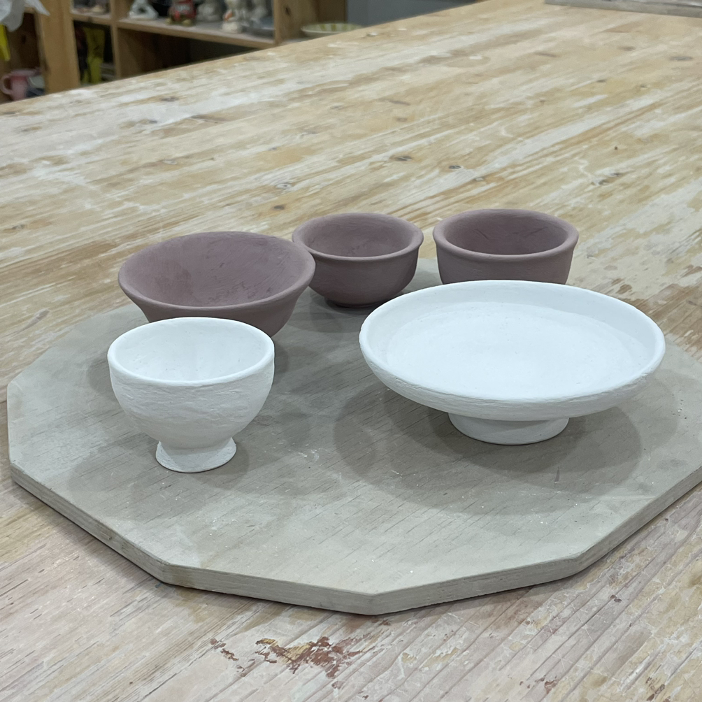 짠. 완성된 잔과 그릇이에요. 정말 온전히 시유까지 제가 한 첫 도자기들이에요. (하나는 마음 아프게도 재벌과정에서 금이 가 쓸 수 없게 되었어요.)
