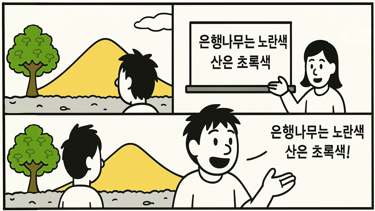 여기 초록색을 노란색으로 보고, 노란색을 초록색으로 보는 사람이 있다고 해 봅시다. 가을철 은행나무가 그에게는 초록색으로 보이고, 한여름 푸른 산이 노란색으로 보입니다. 하지만 그가 태어나 유치원, 초등학교, 중고등학교에 이르기까지 한평생 겪은 사람들의 말과 책에 의하면 은행나무는 노란색이고, 산은 푸르른 초록색이라고 하는군요. 그렇게 그는 다른 사람들과 똑같이 은행나무는 노란색, 숲은 초록색이라고 말합니다. 실제로는 반대로 보고 있음에도 불구하고 말이지요. (이런 생각이 나중에 ‘감각질(qualia)’이라는 개념으로 정리된 철학적 주제임을 알게 된 것은 한참 뒤의 일이었습니다.)