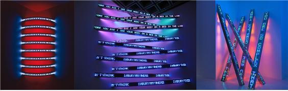 [좌] 제니 홀저, 〈흉곽〉, 2004./[중] 제니 홀저, 〈파란색의 교차〉, 2008./[우] 제니 홀저, 〈모두 떨어지다〉, 2012.
