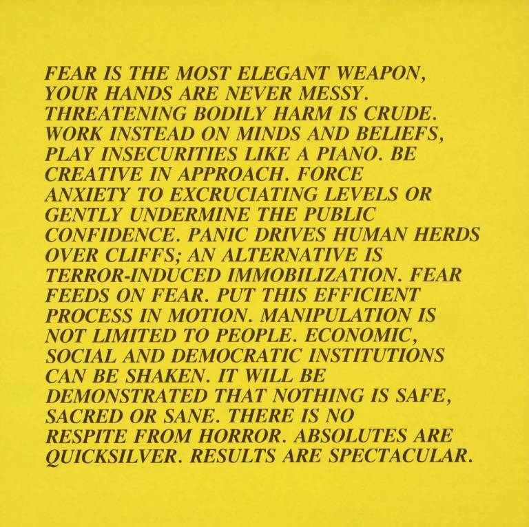 홀저는 1975년 로드 아일랜드 스쿨 오브 디자인(Rhode Island School of Design) 대학원에 진학한 이후, 이미지와 언어의 관계에 관심을 가지기 시작하면서 1977년 첫 텍스트 작업이었던 〈경구들〉을 시작으로 현재까지도 문자 기반의 텍스트 작업을 이어가고 있는 미국의 개념미술가이다. 그녀가 1960-1970년대 개념미술에 영향을 받았던 것은 대학원 시절이었는데, 특히 미술에 언어를 도입하게 된 데에는 조셉 코수스(Joseph Kosuth, 1945- )의 영향이 컸다. 코수스 외에도 로렌스 와이너(Lawrence Weiner, 1942-2021)나 솔 르윗(Sol Lewitt, 1928-2007) 등으로부터 영향을 받기도 했고, 한편으로는 그들과 차이를 두기도 했다.