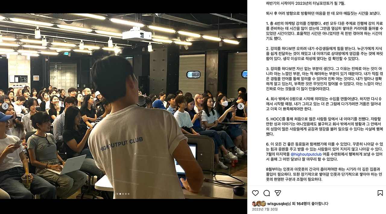 막 퇴사를 했던 시기였고, 회사 밖 첫 활동이 바로 하이아웃풋클럽이었다. 아무런 준비없이 퇴사했던 때라 그때가 오히려 더 담대하고 무모했을 거다.