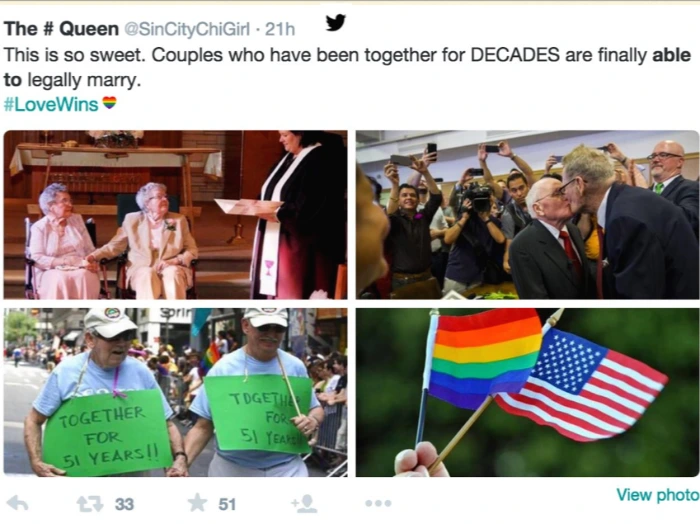 출처: Twitter위에 사진은 성 소수자 결혼이 연방법에 통과되어 합법이 된 날 올라온 트윗맨션 입니다. 연방정부 법(Federal Law)에서 성 소수자들의 인권을 보호하기 위한 법을 통과시켰고 그전에는 불가능했던 동성 결혼이 이제 가능하게 되었습니다.
