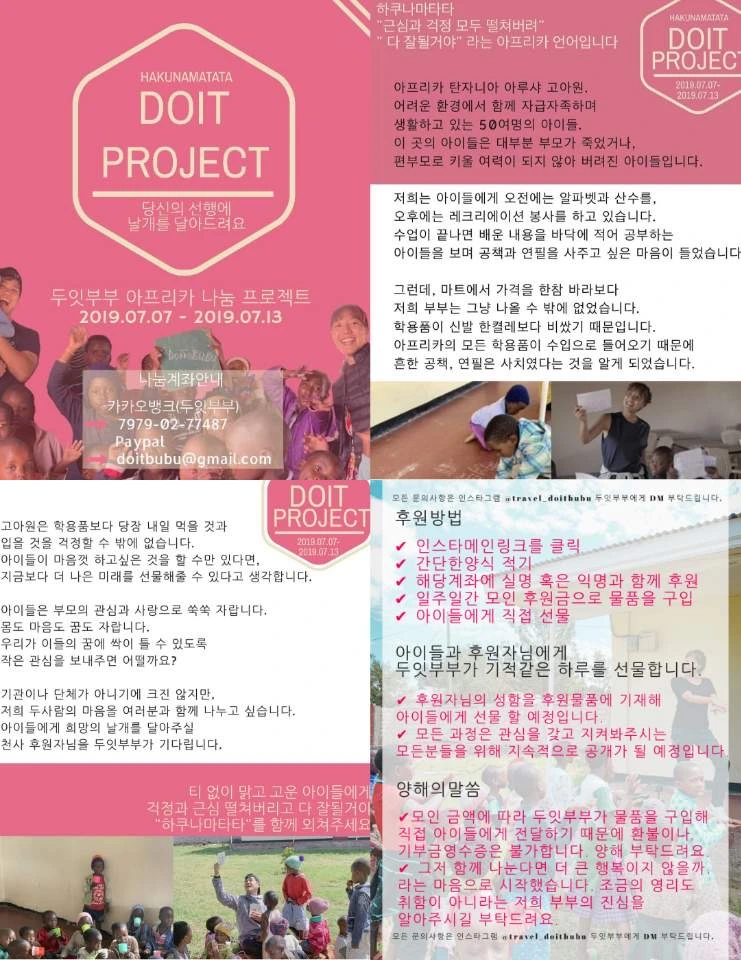 인스타그램을 통해 알리고, 일주일간 모은 모금액으로 아이들에게 펼쳐질 미래에 적극적으로 투자해 보기로 했습니다.