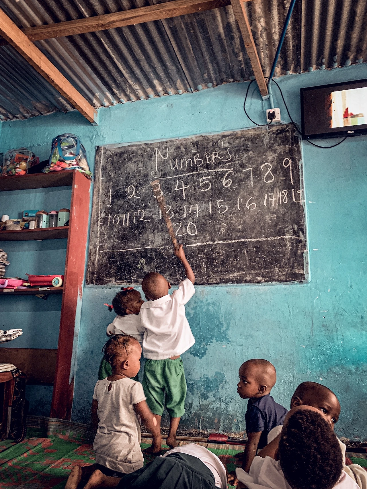 처음엔 경제적 수도라는 말에 내심 기대했다. 좀 더 나은 환경에서 지내는 아이들이 많을 텐데 우리의 도움이 필요한 곳이 있다고? 궁금했다. 탄자니아에서 그나마 나은 도시 아니겠어?라는 생각이었다. 하지만 경제를 주관하는 금융 밀집 센터들은 도심가에 오밀조밀. 조금만 외곽으로 이동하다 보면 바로 그 실상이 낱낱이 보이기 시작한다. 큰 건물들을 뒤로 한채 조금 더 차로 이동하다 보면 바로 시멘트 길이 아닌 흙길로 바뀐다. 거리를 돌아다니며 물건을 팔거나 돈을 구걸하는 사람들이 보이기 시작한다. 시멘트로 지어진 집들 사이사이 높은 벽이 쳐져 있다. 보안이 삼엄하다. 반면 흙으로 지어진 집들은 그 흔한 창문에 유리창 조차 볼 수가 없다. 안전을 위한 울타리여야 하는 집은 자칫하면 사고가 일어날 수 있는 위험천만한 곳이 되어 버린지 오래다. 이 동네는 특히 범죄가 많이 발생하니 낮에만 다니고 항상 조심하라는 지침을 받았다. 그만큼 외국인이 없는 게 당연한 현지인들의 삶. 보이기 위한 곳이 아닌 보이는 게 다인 그런 동네에 우리가 온 것이다. 음산한 분위기의 공동묘지를 지나 골목골목 사이로 들어가다 보면 우리가 봉사할 판자촌 보육원이 나온다. 가난해서. 물이 없어서. 날씨가 더워서. 모기에 물려 말라리아에 걸렸음에도 치료할 약값이 없어서. 며칠에 한번 꼴로 사람이 죽어나가는 곳. 큰 공동묘지 터에 무허가 판자촌을 지어 마을을 이뤄 살아가고 있는 사람들. 가난은 이렇게 벗어날 수 없는 사슬로 연결되어 끊임없이 되풀이 되고 있었다. 보육원의 부모는 대부분 미혼모 가정의 아이들이다. 매일 음식이나 물건을 팔면서 생계를 이어 나가기 위해 보육원에 아이를 맡기고 일터로 향한다. 보육원을 운영하고 있는 사람은 선생님이 아닌 선생님을 자처한 스무살 소녀 ‘음새꽈’. 그녀 역시 판자촌에 살고 있으며 부모가 없는 고아다. 3평 넘짓한 그녀의 작은 방을 개조해 하늘색 벽을 칠하고 임시보호소 개념의 보육원을 만들었다. 아이를 맡길 형편이 되지 않는 가정의 아이를 한명, 두명, 맡아주다보니 아이들이 금새 늘어 지금은 스무명의 아이들을 돌보는 중이다. 음새꽈에겐 꿈이 하나 생겼다. “장래희망: 선생님” 그렇게 작은 방에서 그녀의 꿈을 위한 날갯짓은 시작되었다. 학창 시절 공부를 잘한 덕분에 장학생으로 발탁되어 외국에서 영어를 배우는 기회를 얻었고, 지금은 대학을 가기 위해 돈을 모으며 낮엔 자신의 방을 어린이집 삼아 아이들에게 알파벳과 숫자를 알려주는 일을 하고 있다. 그녀는 아이들에게 공동묘지 판자촌을 너머 더 큰 세상을 보여주기 위해 고군분투하고 있었고, 홈페이지에 올린 그녀의 글 덕분에 우리는 만났다.