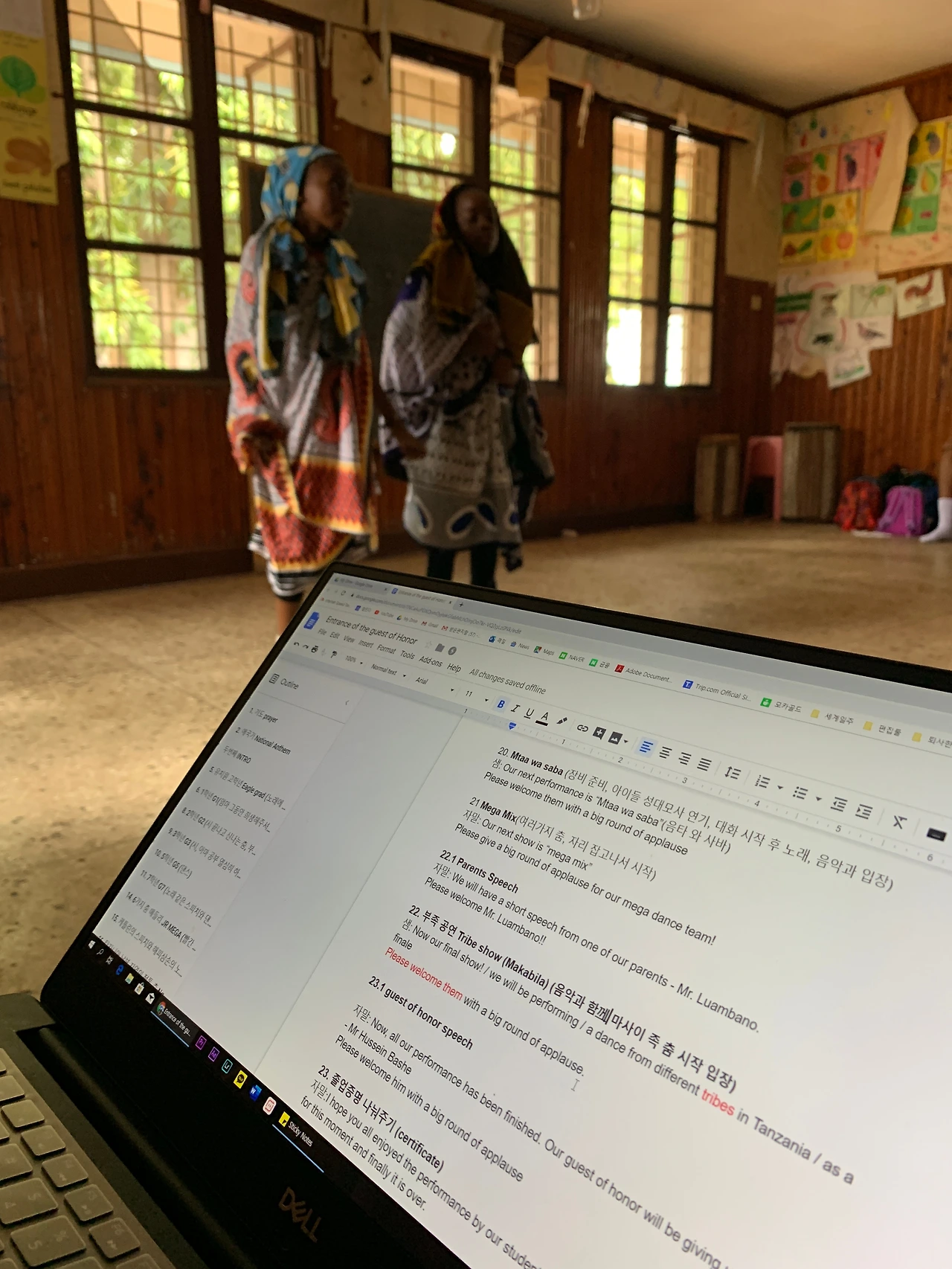 그렇게 우리는 2019년 루카스 초등학교 졸업 축제에 더블 진행을 맡게 되었다. 무려 5시간 동안 진행하는 행사였다. 더욱더 발등에 불 떨어진 우리. 우리는 몇 날 며칠을 잠시도 쉬지 않고 밤을 지새우며 졸업식 진행 순서에 맞게 영어 대본과 스와힐리어 대본을 작성하기 시작했다. 스와힐리어는 아루샤 고아원에서부터 알고 지냈던 탄자니아 교포 동생 덕분에 수월하게 스와힐리어로 번역을 할 수 있었다. 그렇게 완성된 대본으로 수없이 반복된 리허설을 통해 거의 완벽에 가까운 준비를 모두 마칠 수 있었다.