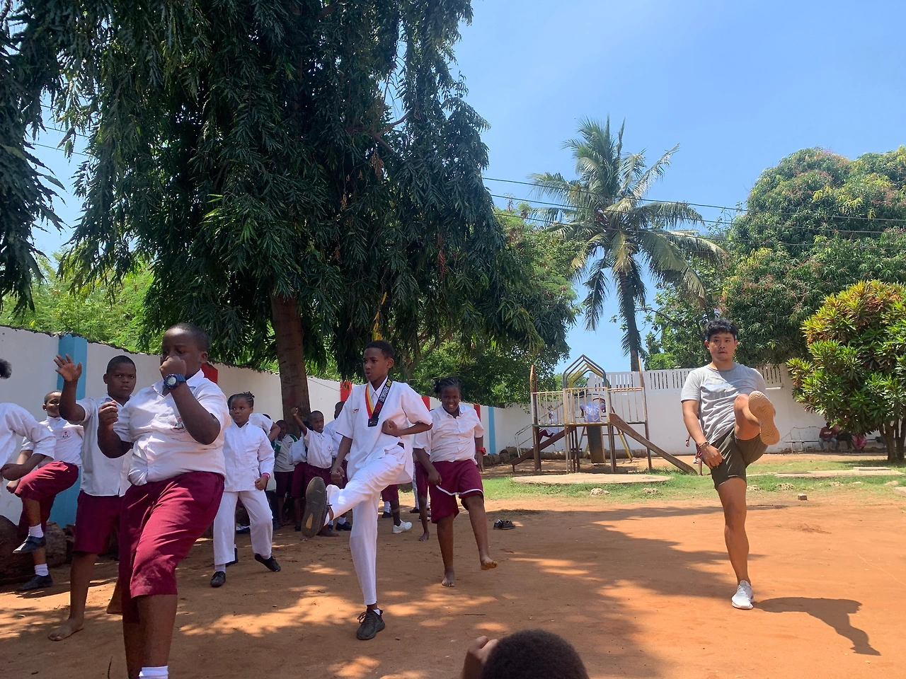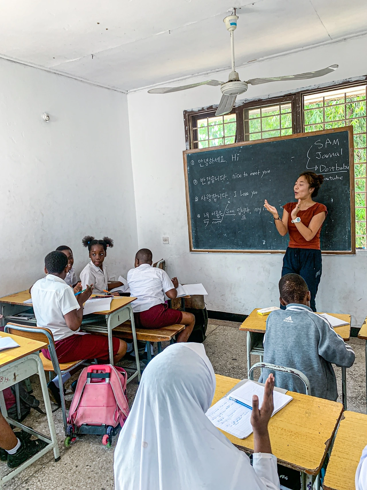 아프리카에서 오랜 시간 지내다 보니까 여러 공립학교에 초대되어 많은 아이들에게 레크리에이션과 꿈을 알리는 강연을 하게 됐어요. 그중 가장 기억에 남는 것이 다르에스살람에 위치한 ‘루카스’ 초등학교인데요, 아이들이 수업에 대한 열정이 유독 남 달랐어요. 그래서 저희가 한글과 태권도를 알려주기 시작했어요. 쉬는 시간마다 한글 표기 방법도 물어보고, 그 이후에 손바닥에 김현영, 홍석남 이름을 적으면서 다니고, 태권도를 배우겠다고 도복까지 준비해오는 아이들의 열정에 감동해서 다음 달에 있을 ‘졸업축제’에 아이들과 태권도 공연을 준비해 많은 사람들에게 한국의 문화를 알렸죠! 그 날의 뿌듯함은 이루 말할 수 없습니다. 아프리카에서 한국 태권도 기합소리가 울려 퍼지다니요…! 아! 축제 날, 저희 부부에게 더블 엠씨를 부탁하셔서, 신랑은 영어로, 아내는 스와힐리어로 엠씨를 보기도 하는 절대 잊지 못할 추억을 만들었어요.