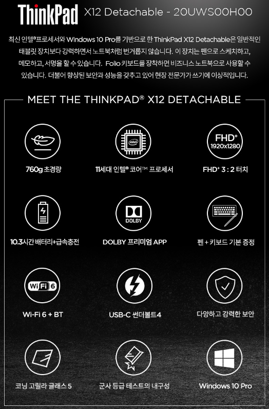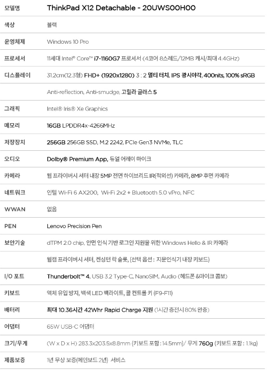 씽크패드 시절 빨간콩이 주는 클래식한 감성과 향수가 있었고, 서피스의 i7 옵션의 과다 책정, 액세서리 정책이 마음에 들지 않기도 했으며, 전투 목적으로 맨날 들고 다니는 이상 튼튼한 놈으로 골라야겠다는 생각이 들었다. 그래서 결국 [씽크패드 X12 Detachable]을 샀다.
