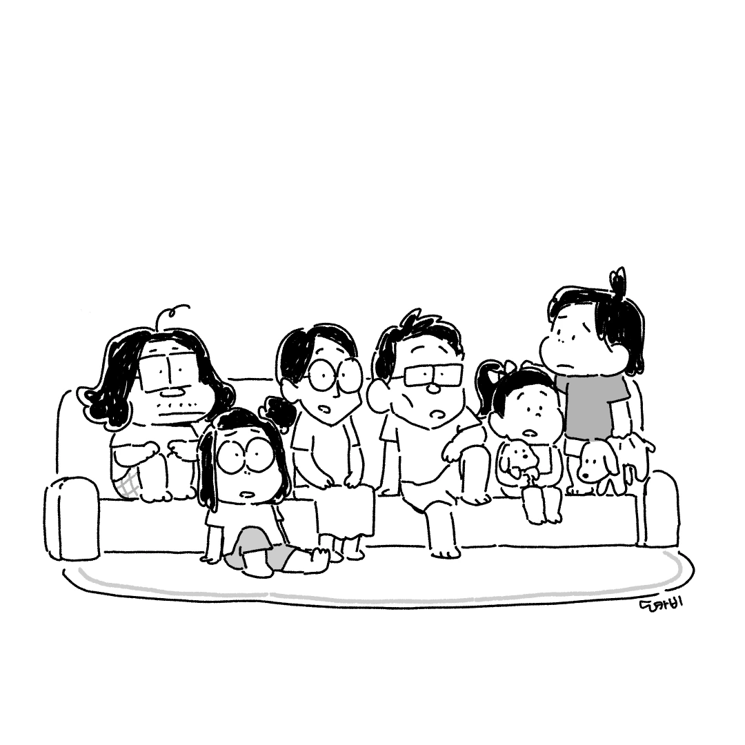 처형네 가족과 TV 앞에 모여