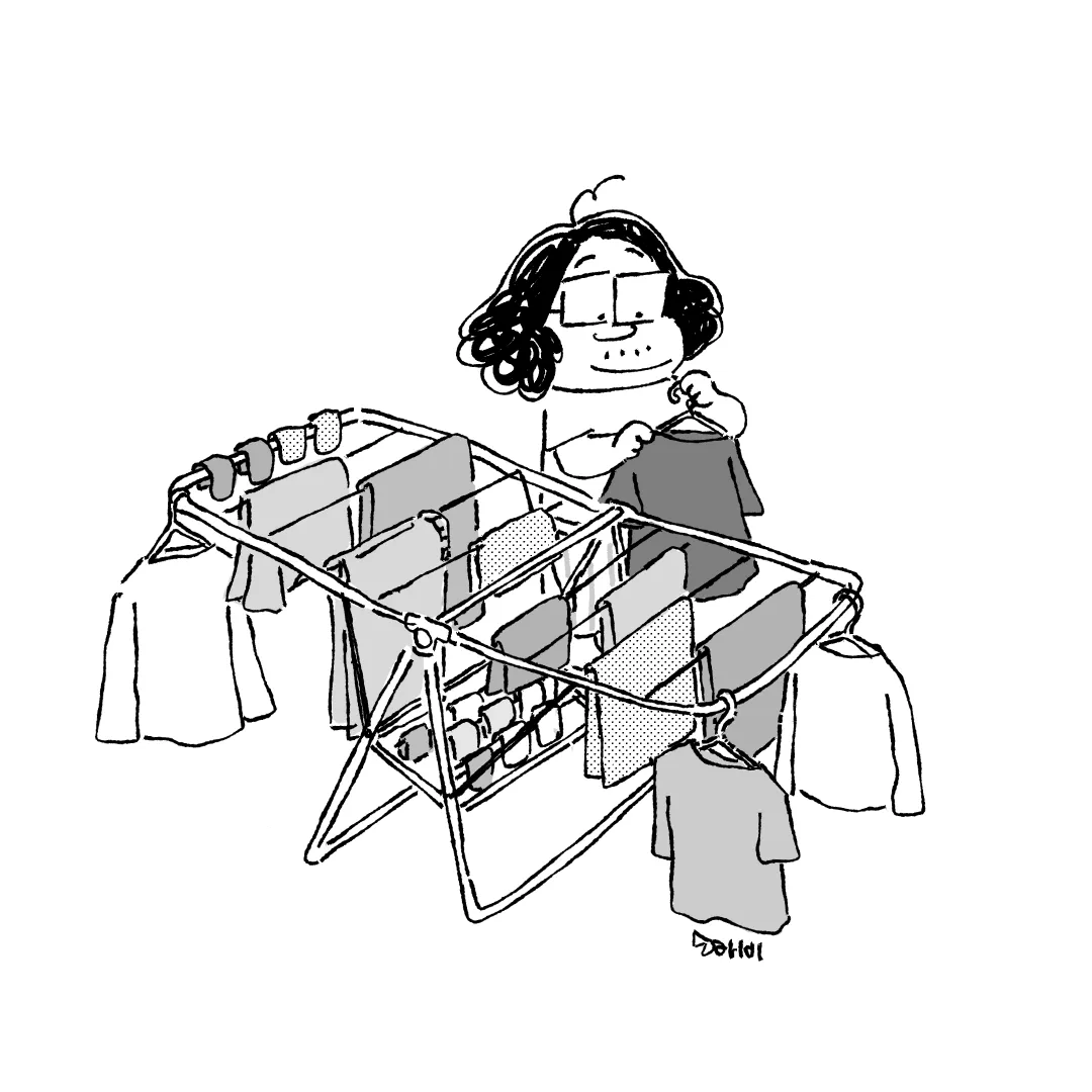탈수 끝난 옷을 한아름 안고 베란다로 간다.