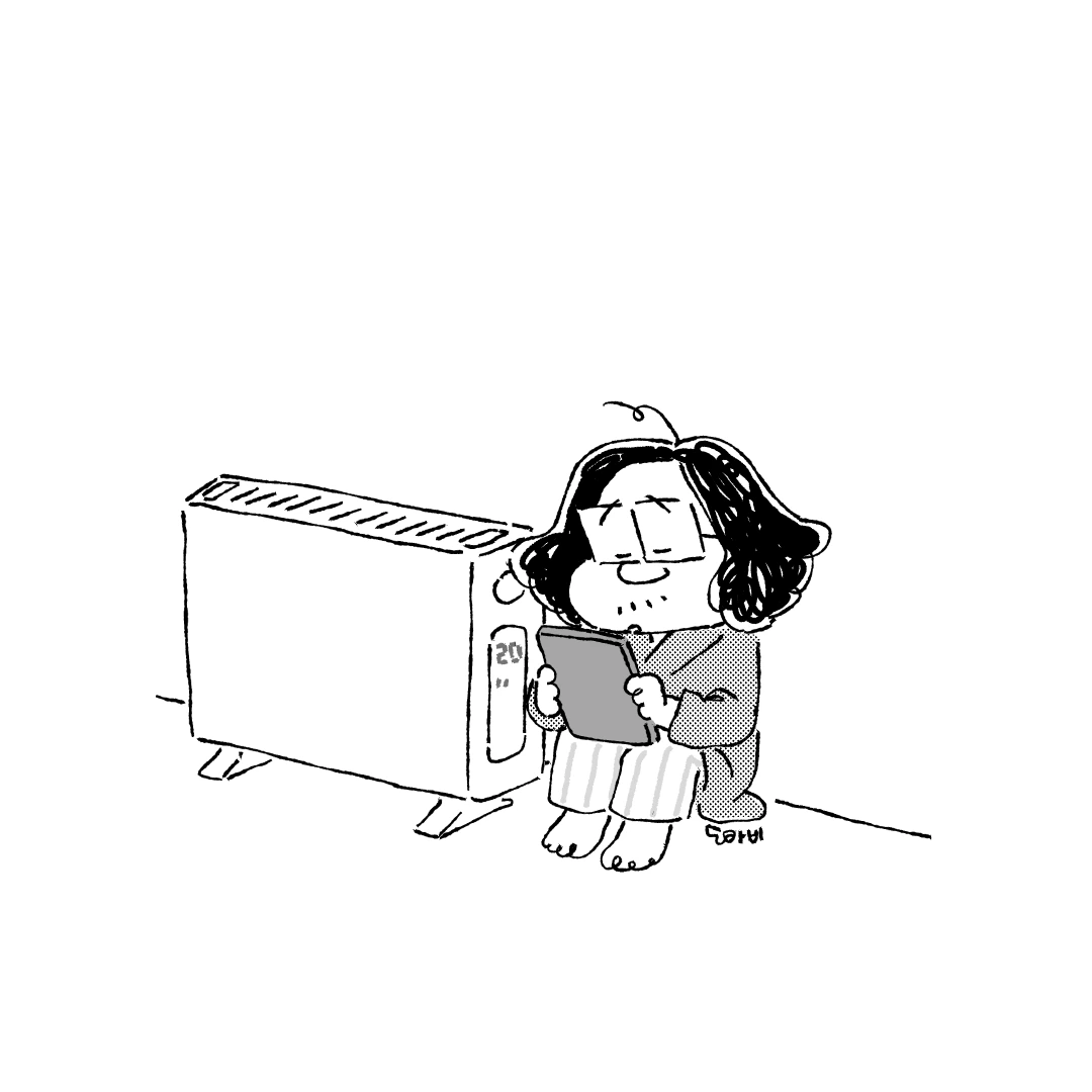 히터 옆에 자릴 잡고.