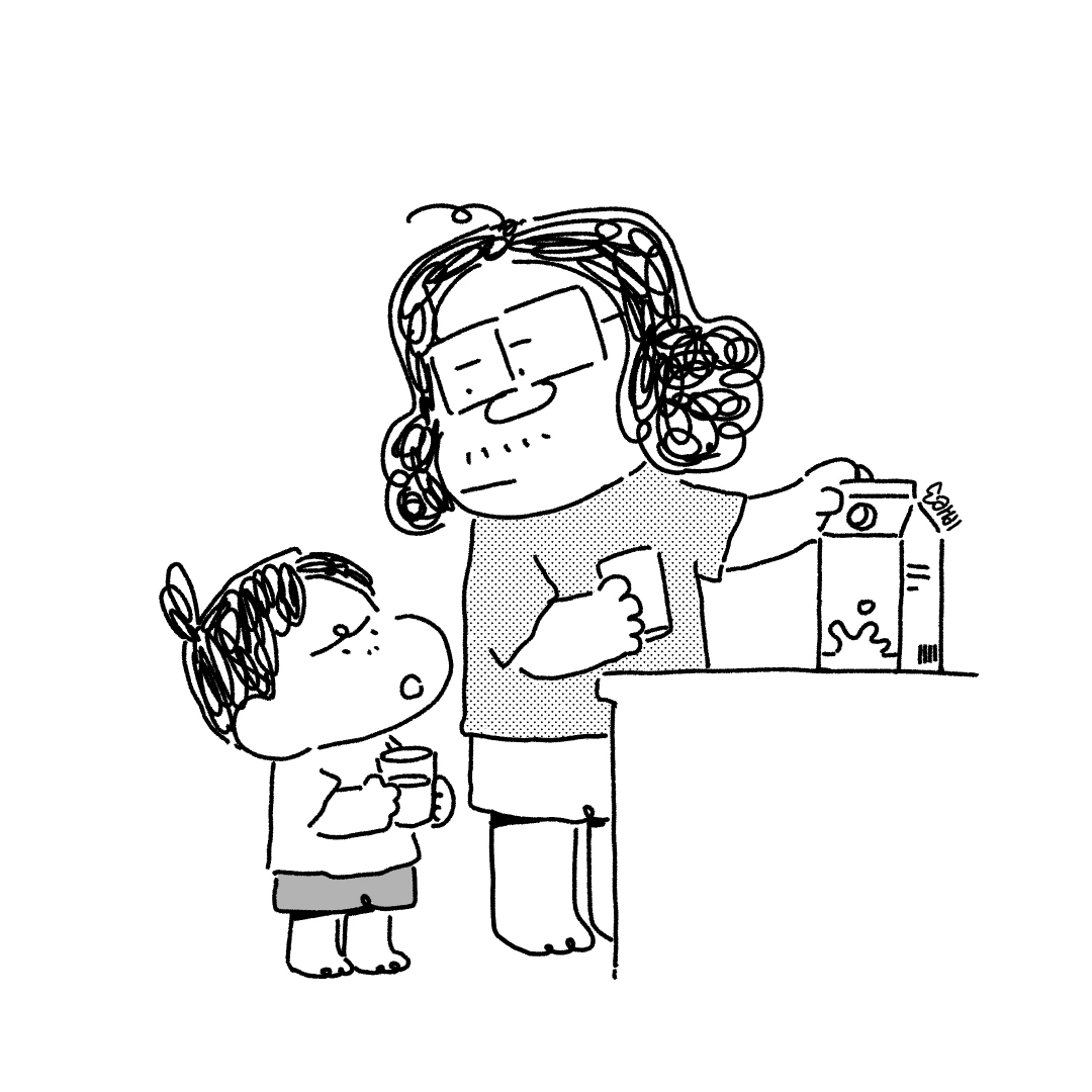 아침에 물 대신 우유 한 잔을 따라줬다.