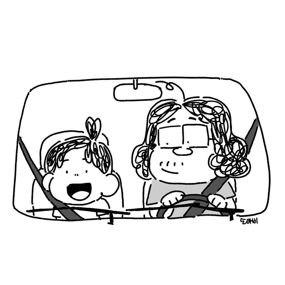 아들이 처음으로 조수석에 앉았다.