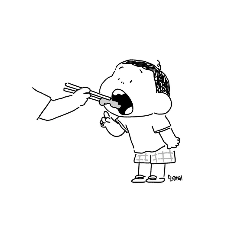 “선생님, 한입만요."