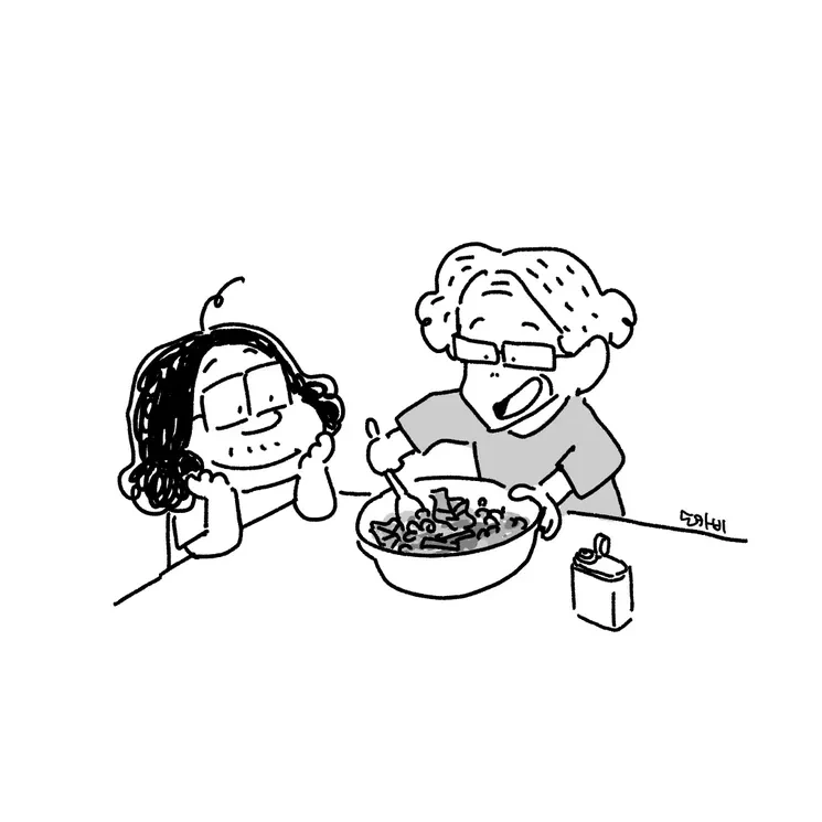 양푼을 순식간에 비워버리고,