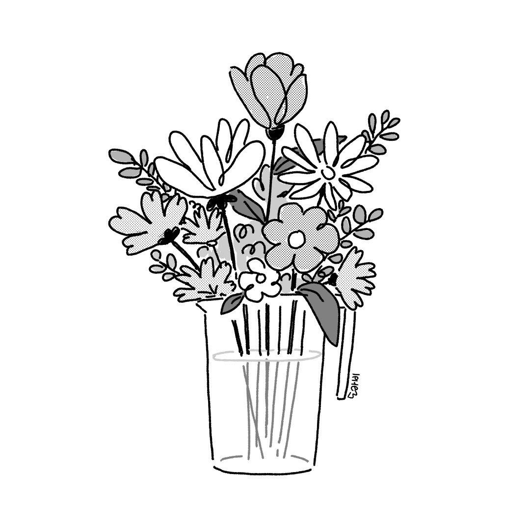 꽃병이 없어서 보리차를 넣어 마시던 병에 꽃을 꽂았다.