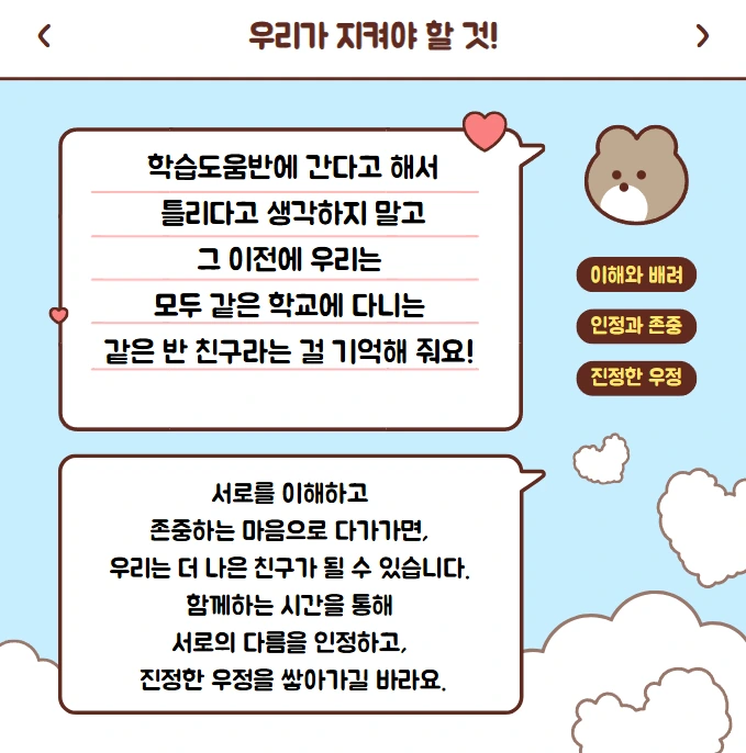 같은 반 친구 중 학습 도움반 친구가 있다면