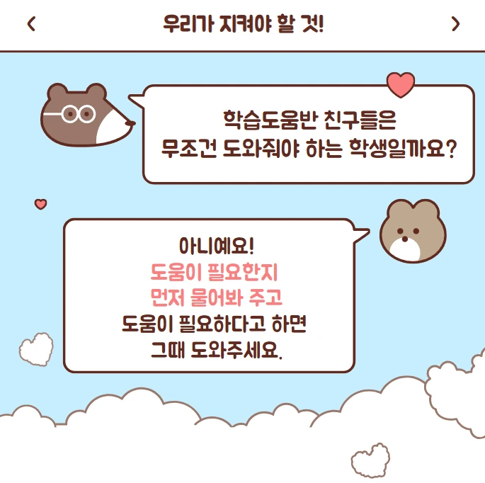 여러분의 도와주려는 마음은 정말 예쁘고 소중해요.