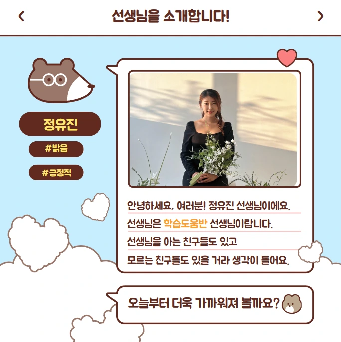 내가 "학습 도움반 선생님이에요"라고 답하자,