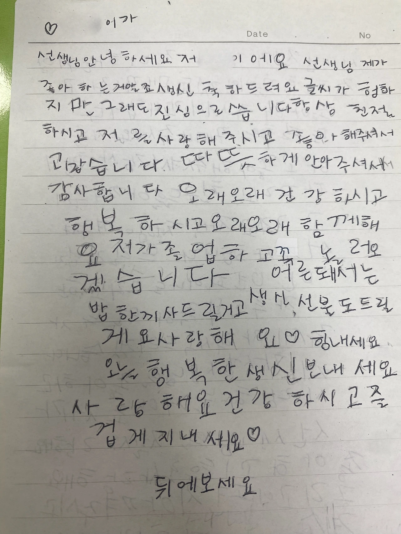 “선생님! 저를 생각해 주시는 선생님을 보면서