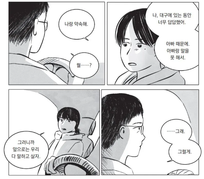 이모들의 비밀을 확인한 효신이 동경과 수치를 느낀 이유는 무엇일까. 그들은 각자의 자리에서 책임을 다하며 역할을 분배했다. 그 모습이 효신의 눈에 비치길, 어른의 완성형처럼 느껴지지 않았을까. 비밀의 절망과 환희를 아는 성숙한 어른으로 보여 부러운 한편으로 그들에게 영원한 이방인일 수밖에 없는 본인의 처지를 새삼 직시하게 됐던 게 아닐까. 효신은 이모들과 함께 보낸 시간을 통해 성장했다. 칭얼거리며 이해만을 바라던 아이에서 벗어나, 본인을 데리러 온 차 안에서 아빠에게 대화를 요구하는 장면은 효신이 스스로의 ‘자리’를 만들 줄 아는 어른이 되었음을 보여준다.