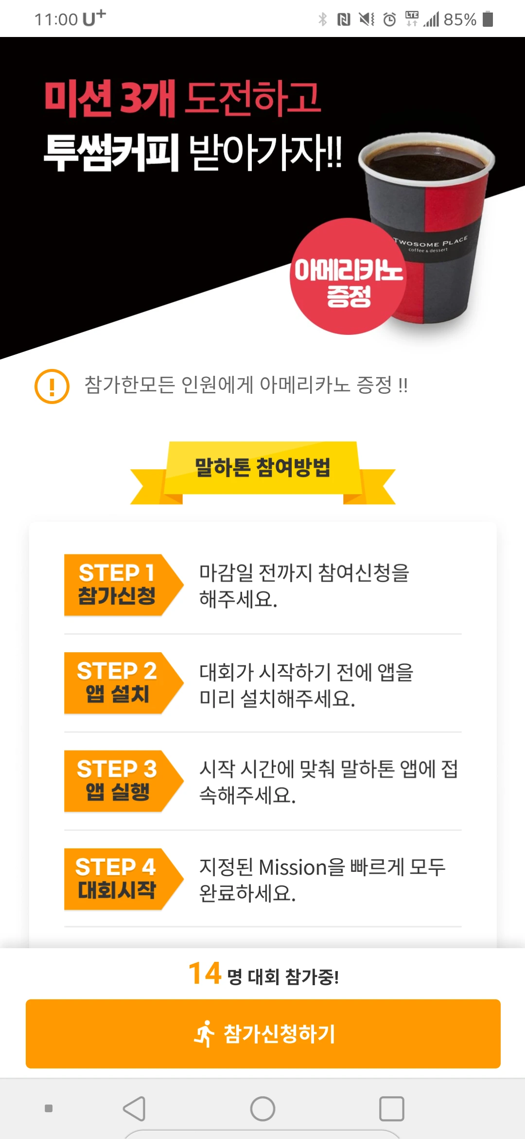 영어대화 미션 3개만 하면 100% 투썸 기프티콘