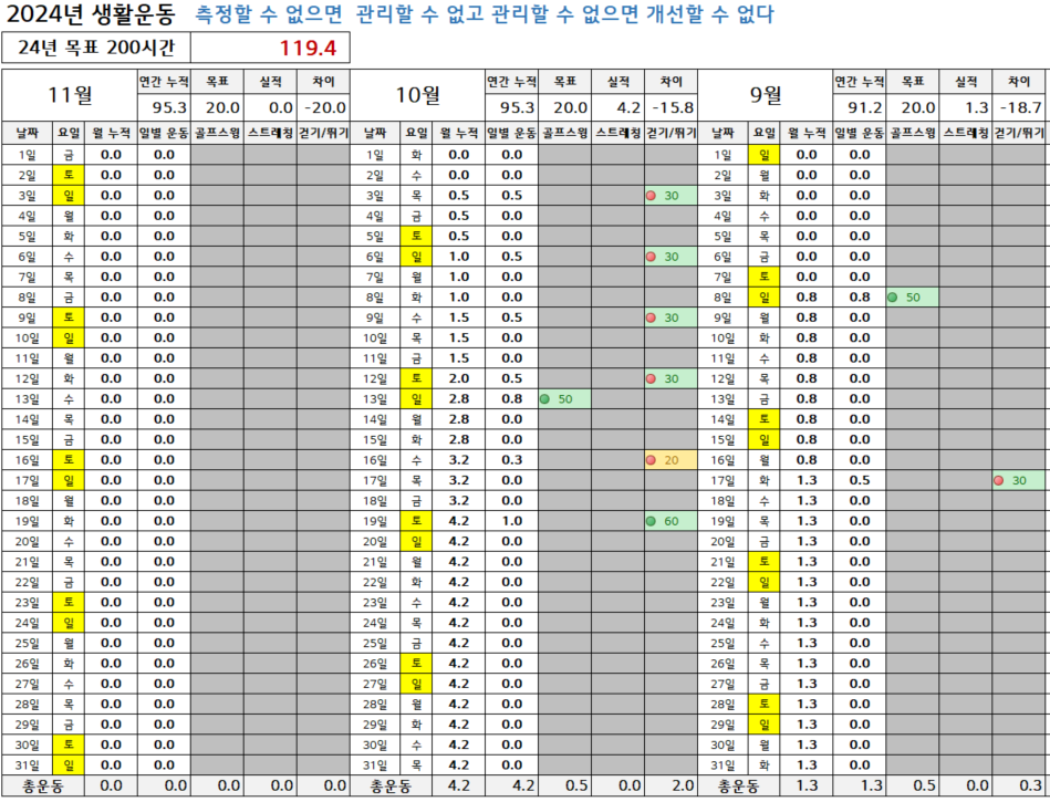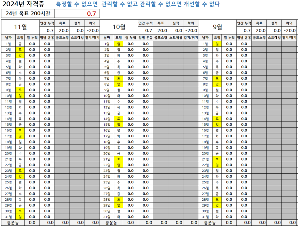 - 스크린골프 정액권을 구매해서 주 1회 스크린골프장에서 골프 연습( 1시간 정도)