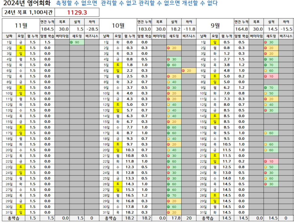 - 비즈니스 워크플로101이라는 비즈니스 회화 책 각 문장을 20번씩 반복해서 소리내어 읽음