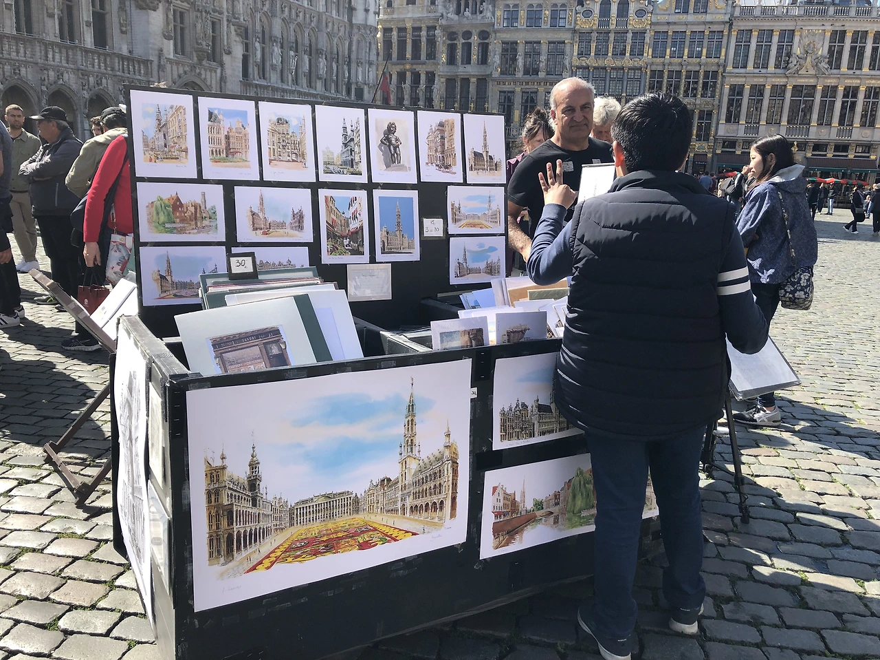 브뤼셀을 아름답게 그림으로 담아 파는 예술가를 상대로 어느 외국인 아이가 가격을 능숙하게 흥정하고 있어 가만히 그림을 감상하던 나도 혀를 내둘렀다.