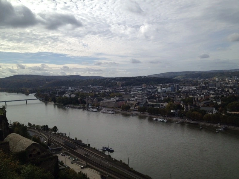 요새 꼭대기로 다가가니 도이체스 에크가 한눈에 들어왔다. 요새 광장의 노천카페에 앉아 따스한 햇볕을 받으며 커피를 한잔했다. 감자튀김에 기내에서 받아둔 간식을 곁들여 먹으니 무릉도원이 따로 없었다.