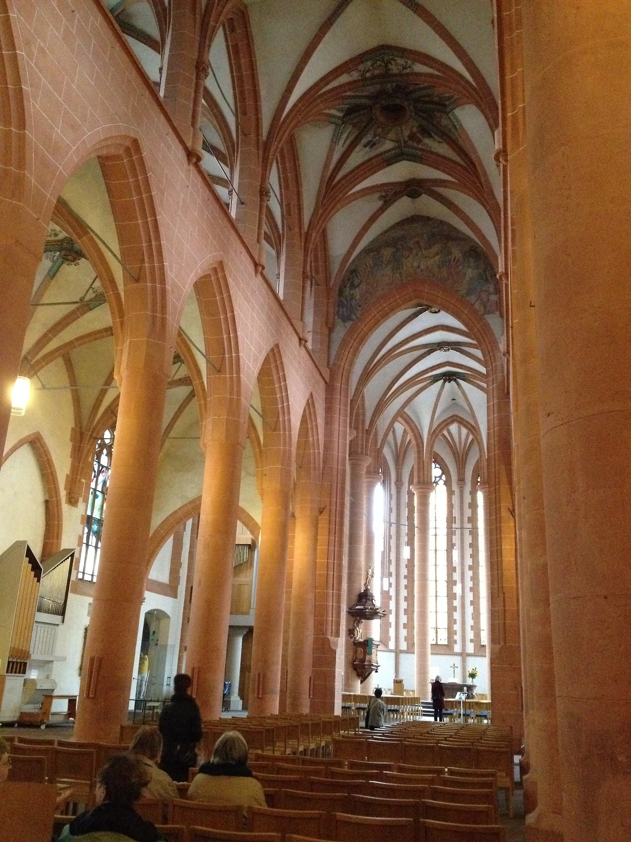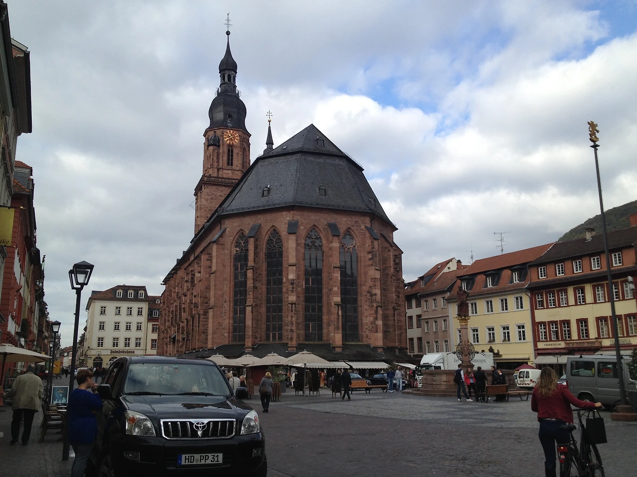 다시 케이블카를 타고 지상으로 내려와 코른 마르크트 광장을 통과했다. 성에서 내려다보노라면 눈에 확 들어오는, 하이델베르크를 대표하는 거대한 성령 교회다. 이 교회 주변엔 관광객들의 발길을 붙잡는 수많은 기념품 상점들과 레스토랑이 즐비하다.