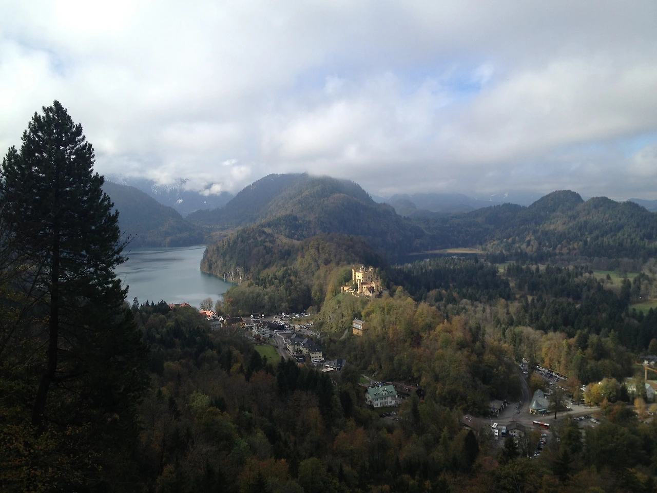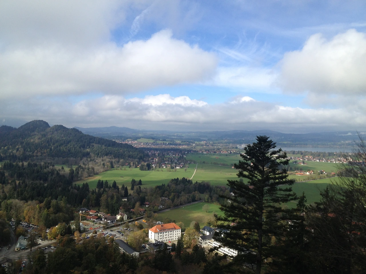 다리에서 되돌아가 백조성을 영접하러 길을 따라 걸어가니 저 멀리 호엔슈방가우 성과 알프 호수가 그림처럼 펼쳐져 있었다.