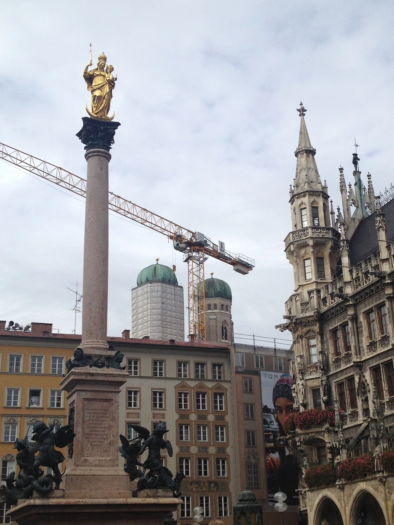 뮌헨의 가톨릭(구교) 신자들은 성모 마리아에게 자신들이 프로테스탄트(신교)와의 전쟁에서 승리하면 지금의 시청 광장에 마리아상을 만들겠다고 약속했고, 구교와 신교의 30년 전쟁에서 이겨 약속대로 황금 마리아상을 세웠다.