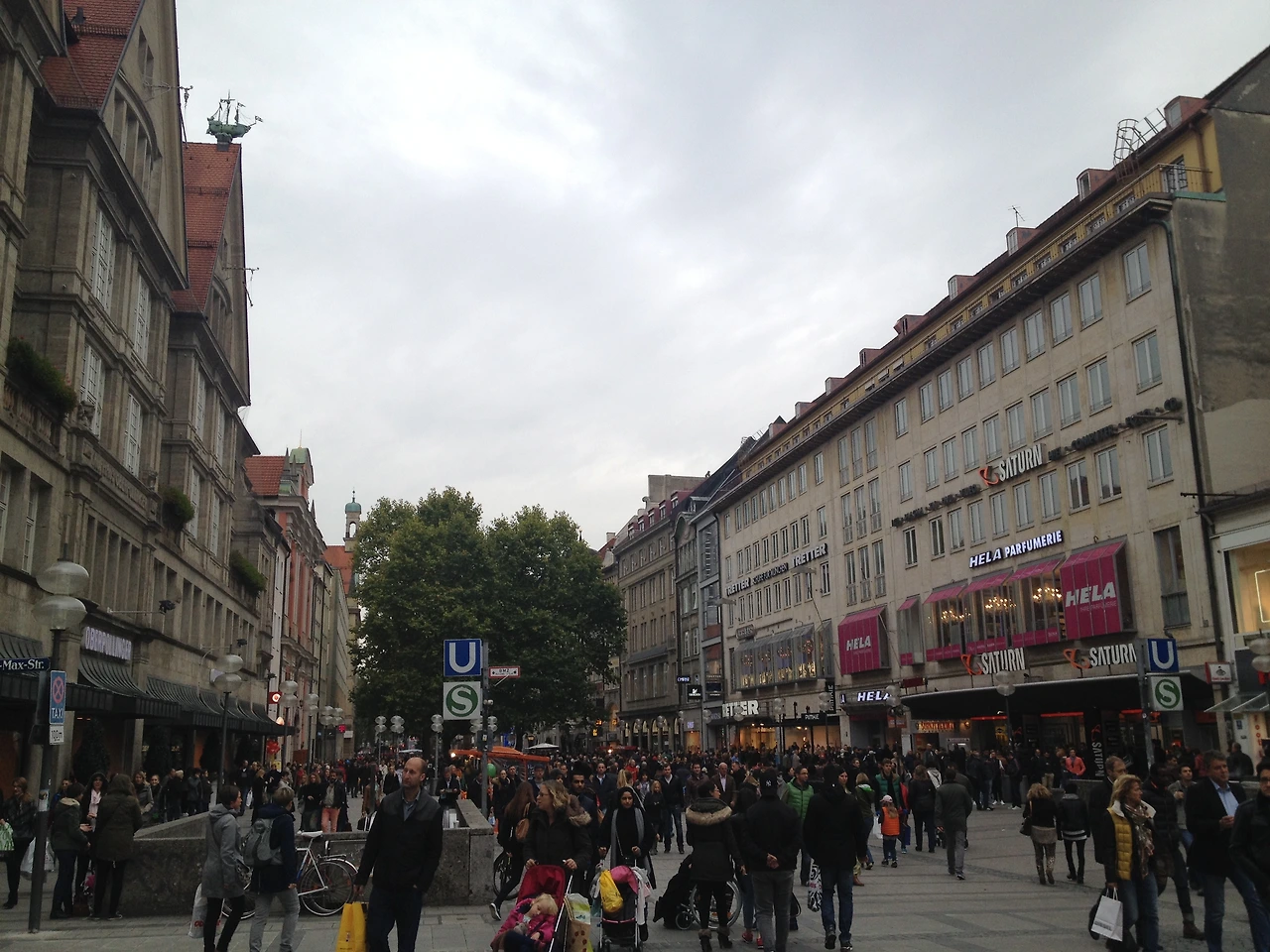 성당에서 나와 카를 문까지 죽 이어진 큰 대로인 카우핑어 거리를 걸어가는데 사람들이 그야말로 물밀듯 쏟아져 들어오고 있었다. 토요일이라 그런지 오가는 사람들이 엄청 많았다. 가늘게 오던 비가 점차 굵어져 광장 지하로 내려가 잠시 카페에서 차 한잔 마시고 호텔로 돌아가는 것으로 뮌헨에서의 첫날 투어를 마쳤다.