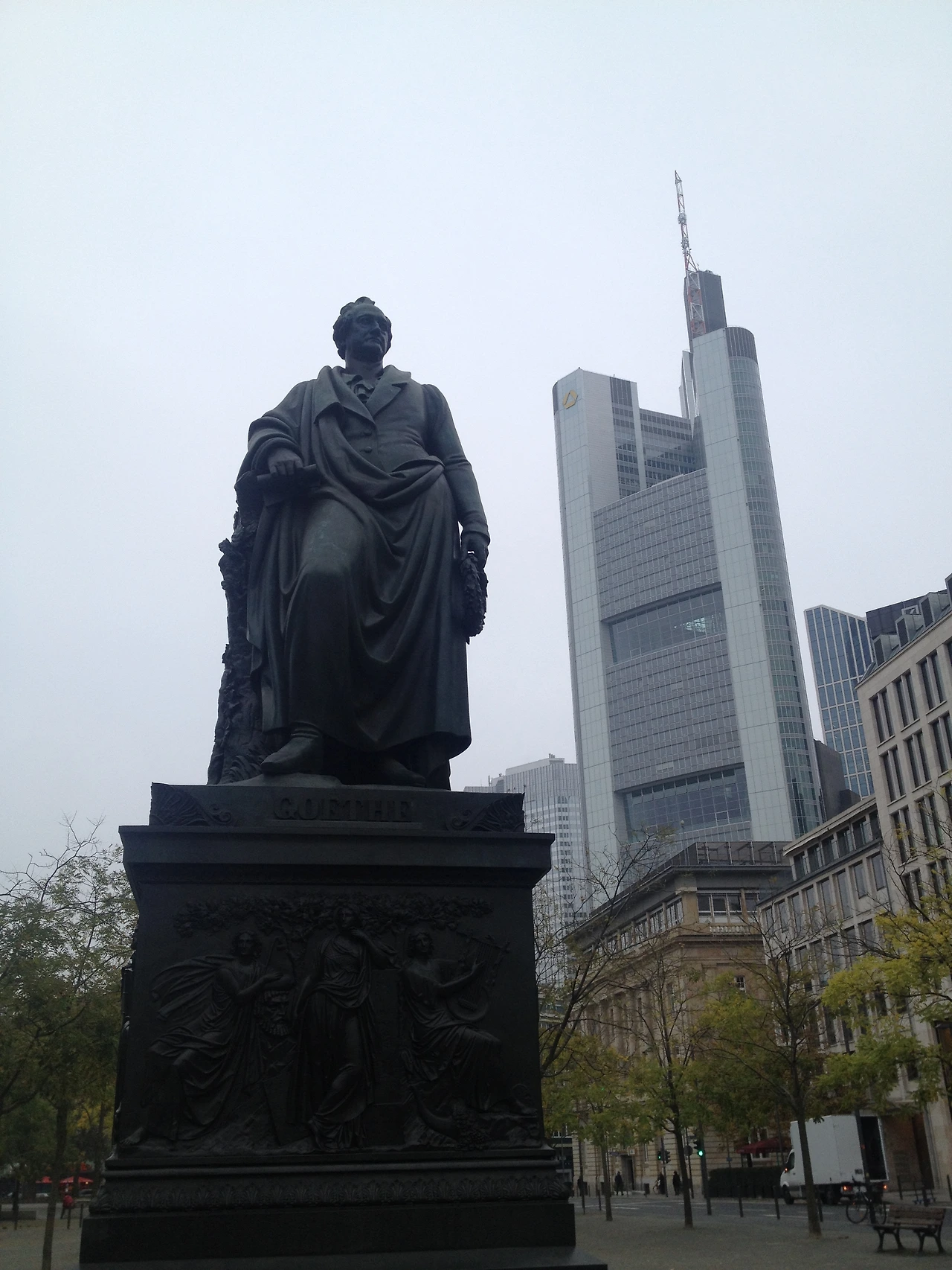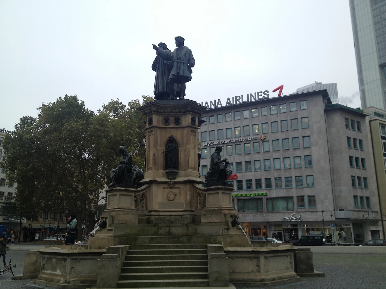 한참을 걸어 독일의 대문호 '괴테'와 근대 활판 인쇄술의 발명가 '구텐베르크' 동상이 있는 큰 광장에 갔다. 괴테 광장과 로스마르크트 광장이 합쳐진 곳인데 주말이나 축제 땐 수많은 사람들로 가득 찰 것 같았다.