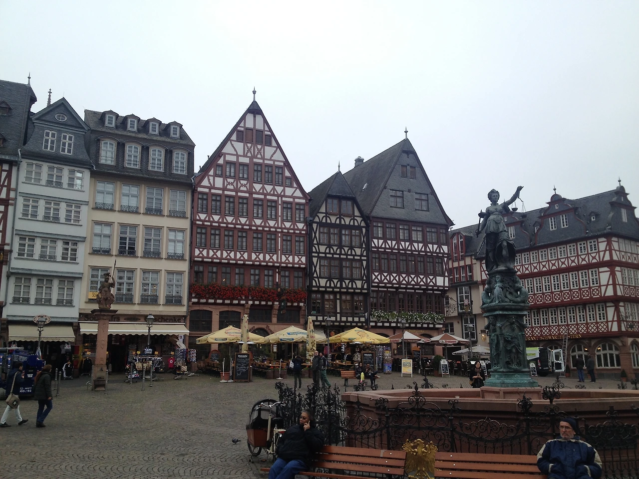 프랑크푸르트를 대표하는 뢰머 광장엔 정의의 여신 분수와 '오스트차일레' 건물이 있다. 프랑크푸르트에서는 시청사를 라트하우스 대신 로마인이라는 뜻의 '뢰머'라고 부른다. 대성당에서 신성로마제국의 황제 대관식이 끝나면 이 시청사 건물에서 축하연을 베풀었다고 한다. 프랑크푸르트는 독일 제1제국인 신성로마제국의 황제 선거지였으며, 1805년 나폴레옹이 점령할 때까지 5.5km의 성벽으로 둘러싸인 성채 도시였다. 역사박물관엔 약 800년 전 12, 13세기 중세 독일을 다스렸던 슈타우퍼 가문의 시대를 전시하고 있었다.