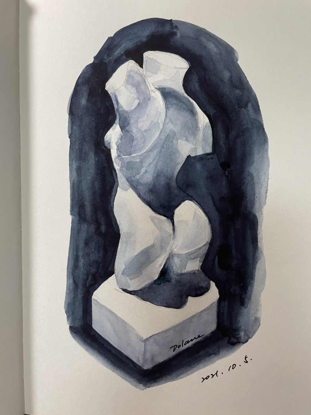 정말 오랜만에 인체 수채화 스케치북을 꺼내 평소 마음에 둔 토르소를 그렸다. 형태도 명암 표현도 모두 마음에 안 들었으나 다시 시도했다는 것에 큰 의미를 두기로 했다. 그러며 여러 생각들이 꼬리를 물며 나오기 시작했다.