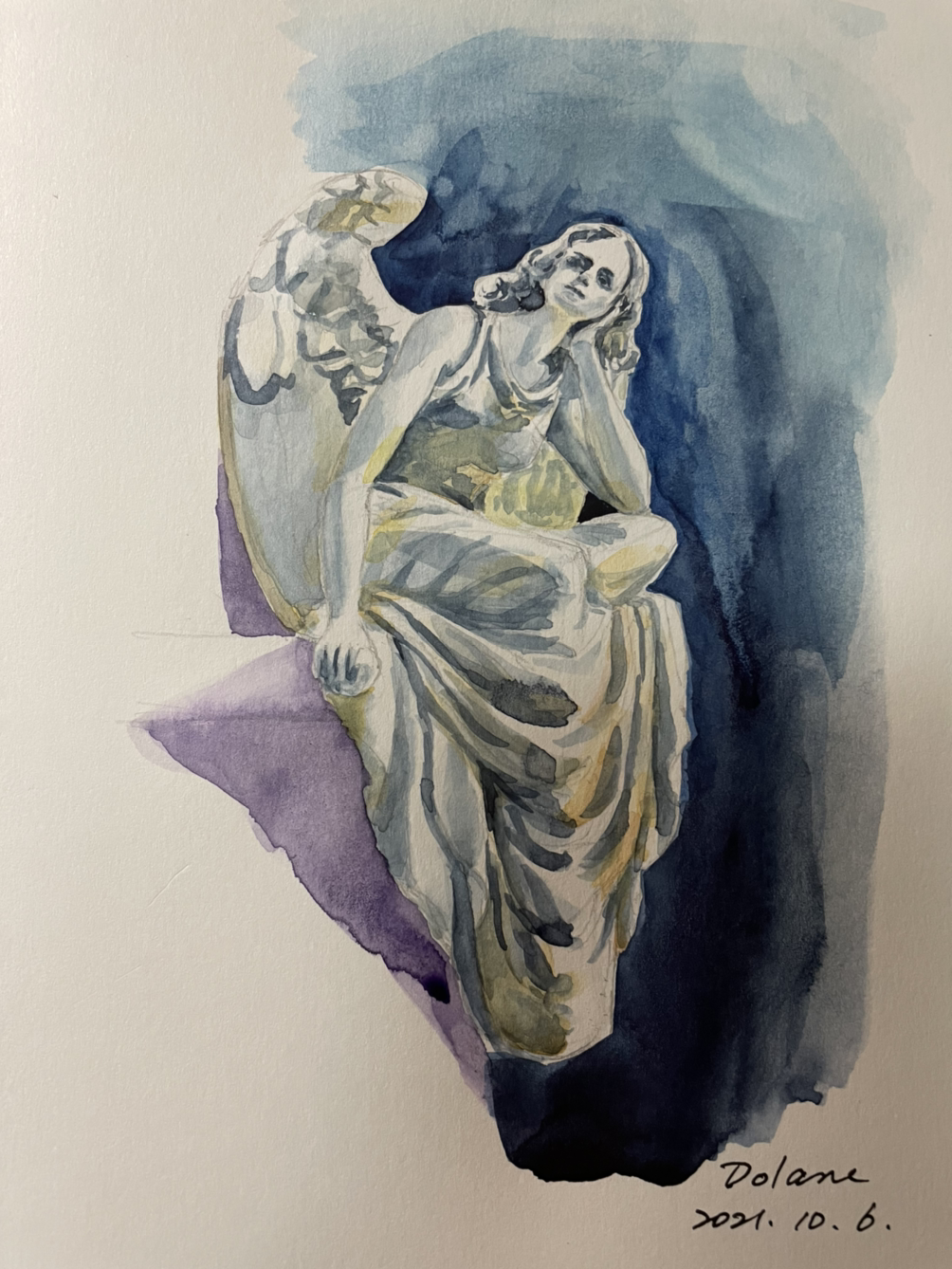 따스한 오후의 햇살을 받으며 소녀 천사가 앉아 있다. 한 손으로 머리를 받친 편안한 자세에 입가엔 얇은 미소마저 번져있다. 눈을 뜬 채 또 다른 상상의 날개를 펼치고 있는 듯하다.