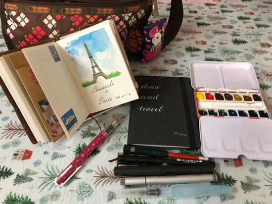 여행 때 특별히 챙겨간 물건은 그림도구들이었다.